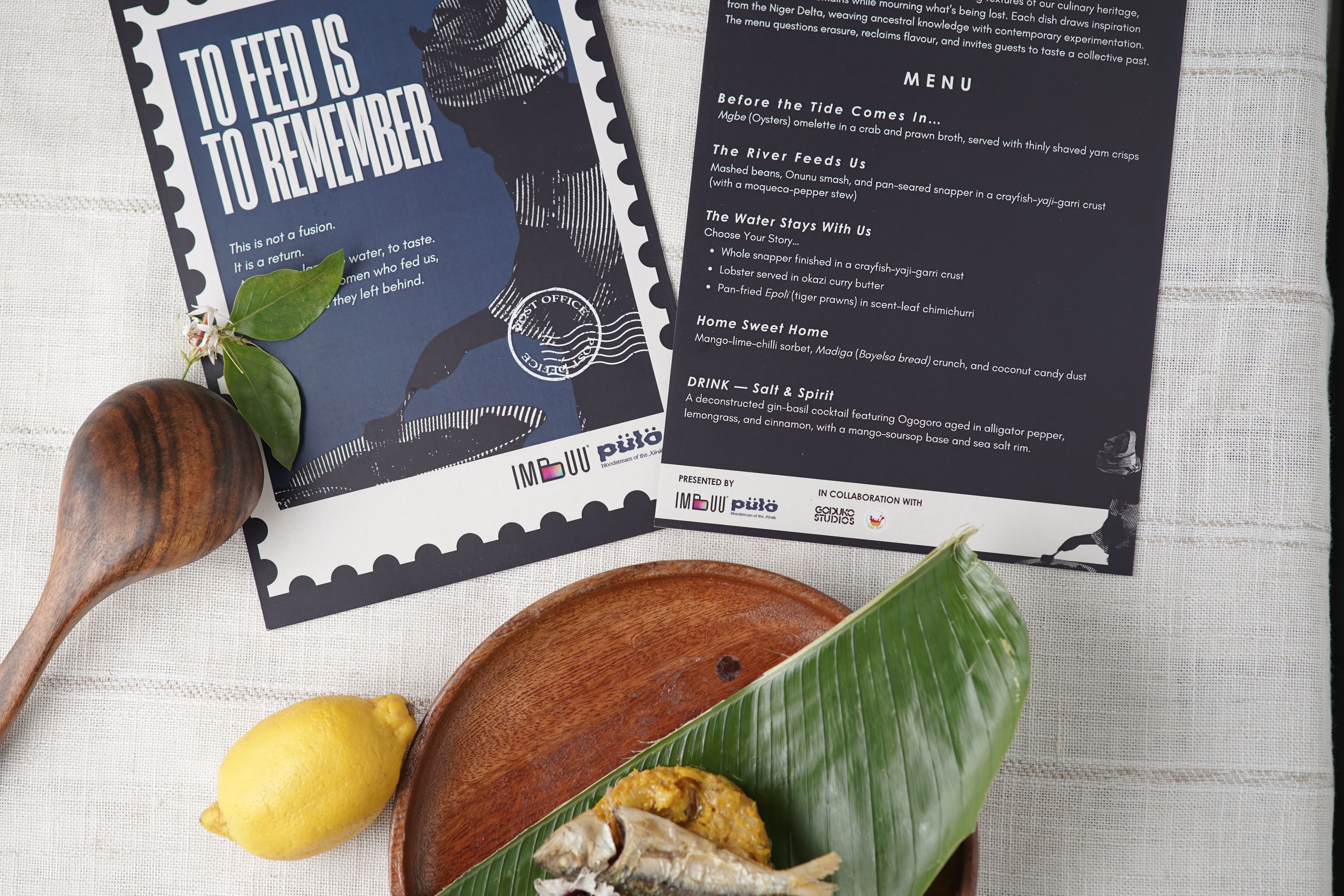 To honour Mbu, we chose not just to recreate her dishes but also to reimagine them. The tasting became a translation of her most memorable ingredients and her wheelbarrow of food reassembled into a curated table, where flavours carried history and the quiet power of women who fed us into being.